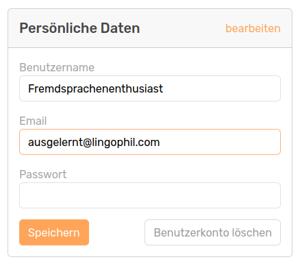 Anschließend wählen Sie im Menü links den untersten Punkt "Profil" aus und klicken anschließend im Reiter "Persönliche Daten" auf "bearbeiten".