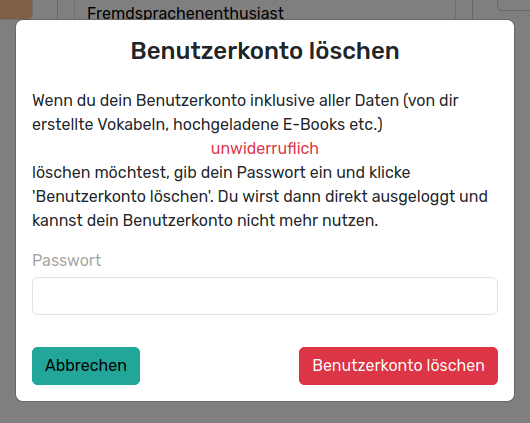 Bestätigen Sie die Löschung Ihres Kontos und aller damit verbundenen Daten durch Eingabe ihres Passworts und klicken Sie anschließend auf